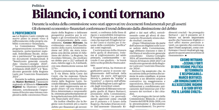 Assestamento e rendiconto in Commissione Bilancio (Latina Oggi)