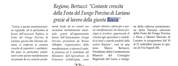 Sagra Fungo Porcino Lariano (Voce di Civitavecchia)